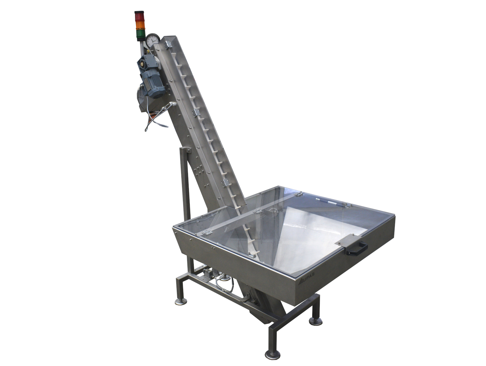 Upas Steigförderband mit Bunker Förderband Förderstrecke Förderlänge 1.740 mm